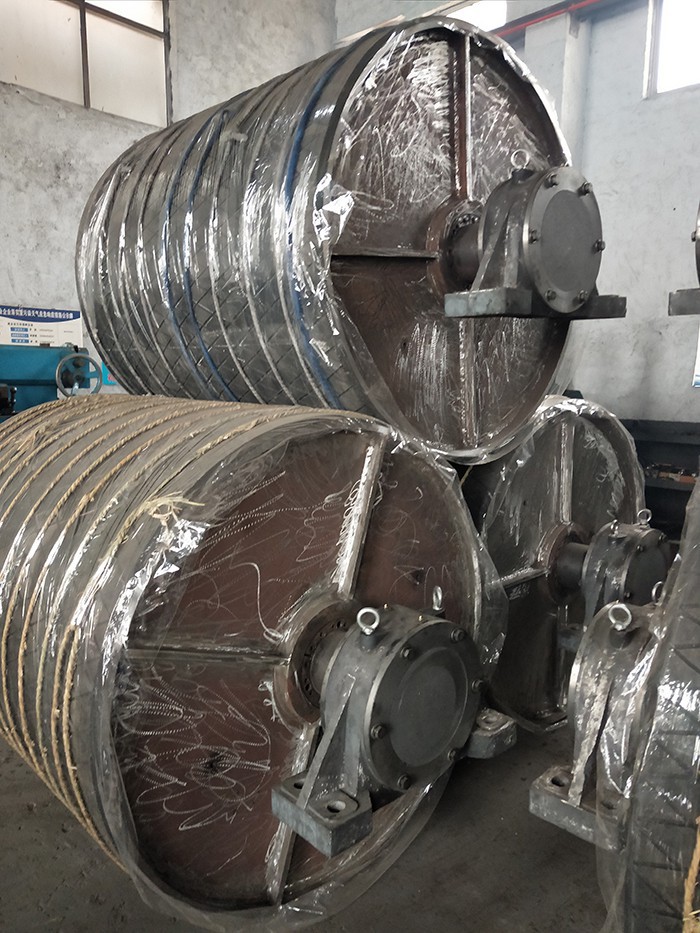 傳動滾筒是帶式輸送機傳遞動力的主要部件,其驅動帶式輸送機的方式有單滾筒、雙滾筒及多滾筒之分。單滾筒多用于功率不太大的輸送機上,如煤礦地面運輸及選煤廠等處。井下帶式輸送機一般均采用雙滾筒,以使輸送機結構緊湊。